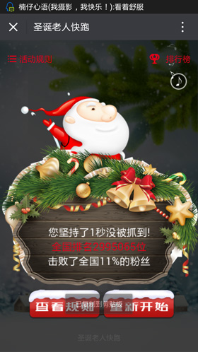 圣诞老人快跑是一款躲避类型的游戏,玩家控制圣诞老人移动位置来躲避驯鹿,速度越来越快,在规定的时间内坚持的时间越长,谁就能获得好的排行,得到相应的奖品!