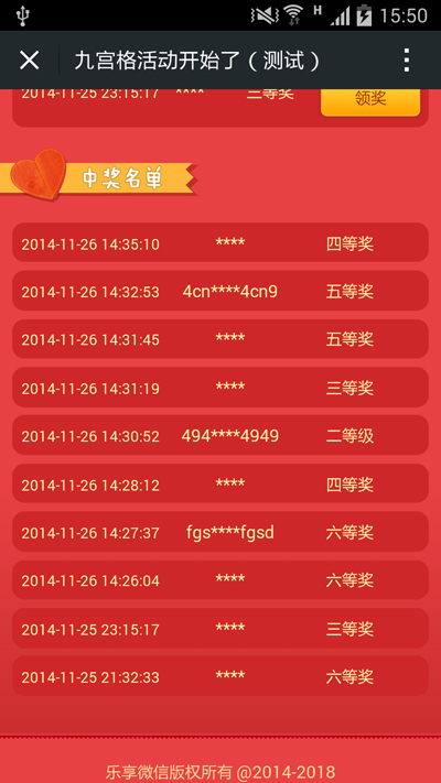 4.中奖奖品直接显示在页面,用户可以直接领奖。